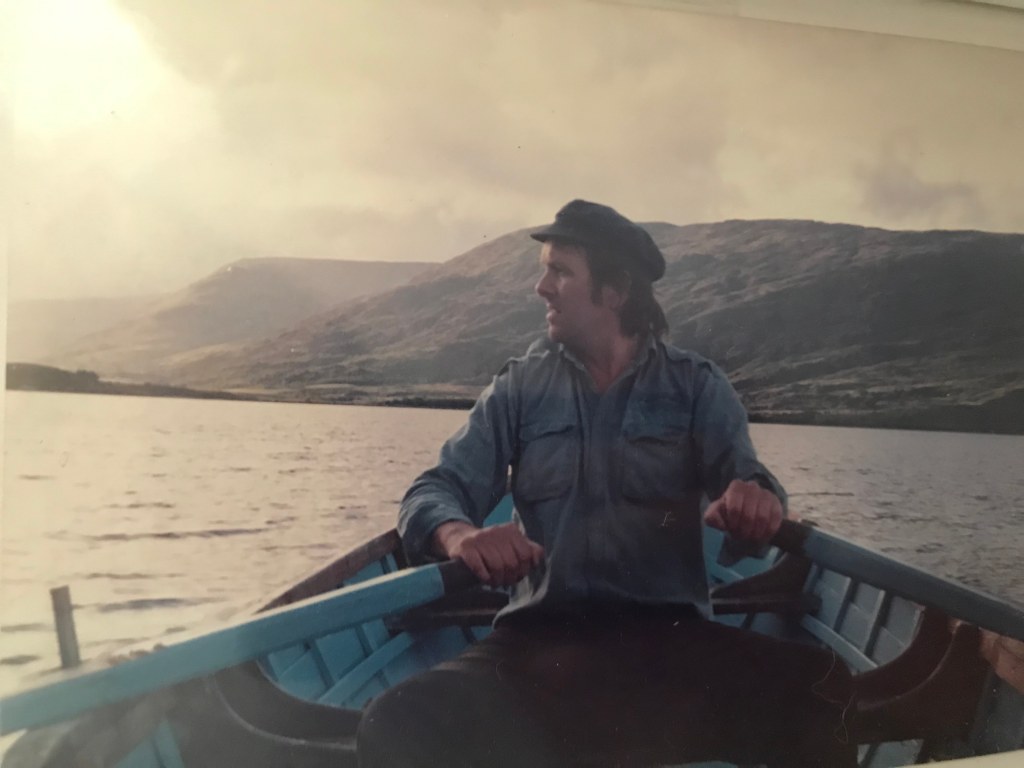 Liam is pictured above, rowing a boat, and below, with his wife Carmel, in the doorway of their Inishbofin house. Liam was a lively and curious character and is still greatly missed by his family and friends. He was involved in the truck leasing business, and had travelled the world as a truck driver, including much of the Middle East
