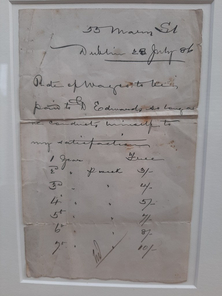 Above : His work contract – ‘so long as he conducts himself to my satisfaction.’