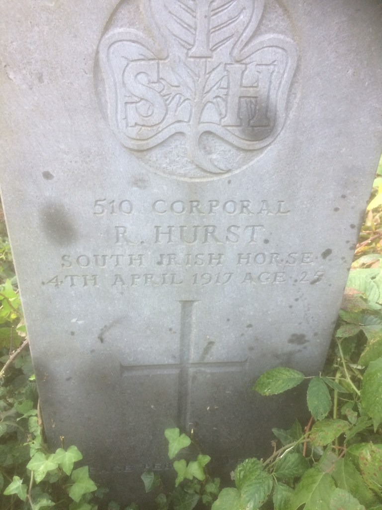 Another fatality of the First World War here is Robert Hurst, who died in 1917, aged 25. He was the son of Richard Hurst and Kathleen Hurst, formerly Lomax, was born on 4 June 1891, at 7 Mountjoy Cottages, Dublin.